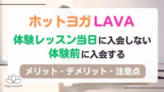 ホットヨガLAVAに入会しようか迷っている方で、体験レッスン当日に入会しないデメリットってある?お得な入会方法が知りたいという疑問がある方がいると思います。せっかく入会するなら、できるだけお得に入会したいですよね。今回は、ホットヨガスタジオ...
